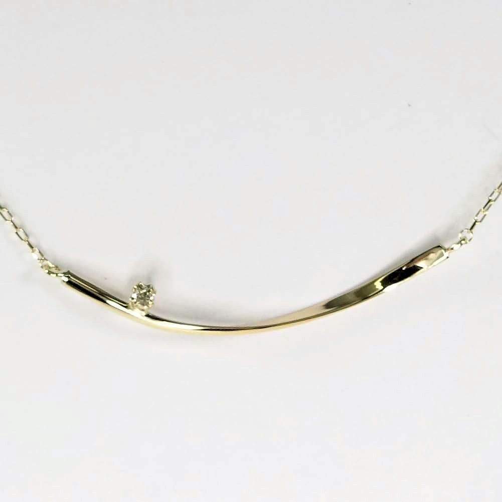 繊細なゴールドチェーンに、アールを描くゴールドバーをあしらった、K10ゴールドのシンプルダイヤネックレス!