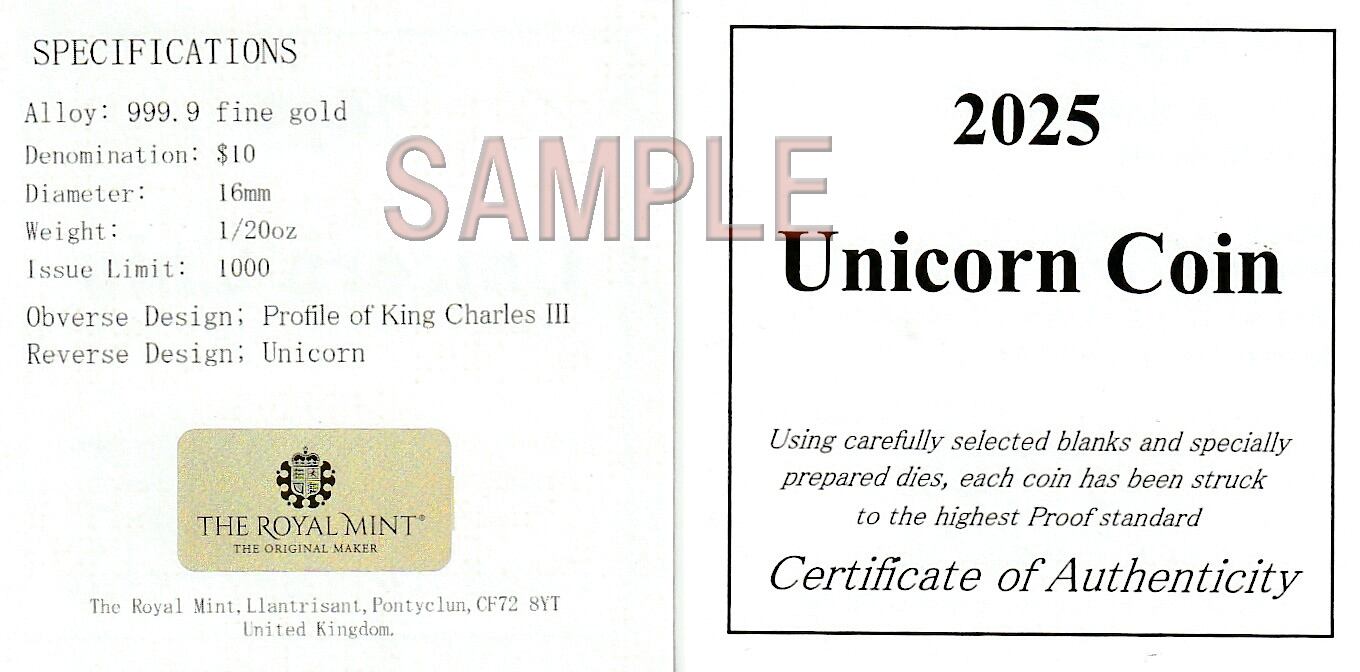 製造は、英国の王立造幣局で、その伝統と技によって造られるユニコーン・コインは、最高の仕上がりとなっています。