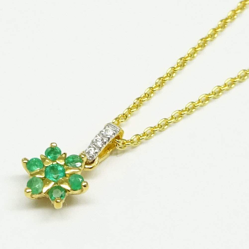 定番セブンストーンのエメラルドが繊細な花びらのように胸元で可憐に舞うエレガント!