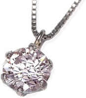 クリアで照り光沢の強いダイヤモンドを低い6本爪でシンプルに留めたペンダントネックレスです。クラリティはなんとSI-2で Goodカット! Very Light Brownなので若干色味は伴いますが、照り光沢が良く、インクルージョンも肉眼では殆ど判らないレベルです。