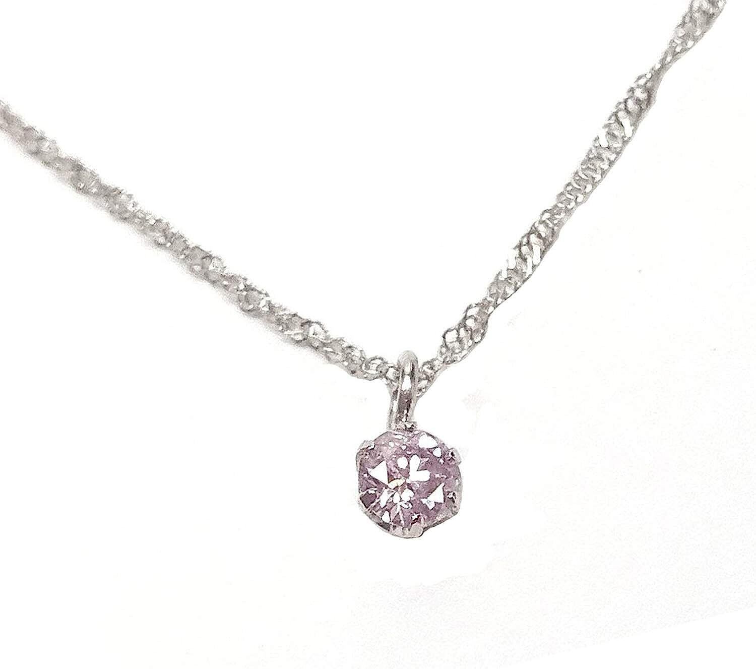 【4047b】プラチナPt900 天然ピンクダイヤ ネックレス 0.10カラット SI-1 クラリティ 一粒ピンクダイヤモンド