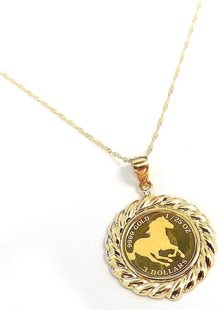 【11100769n】純金ツバルホース1/25ozペンダント ネックレス K18デザイン枠付・純金